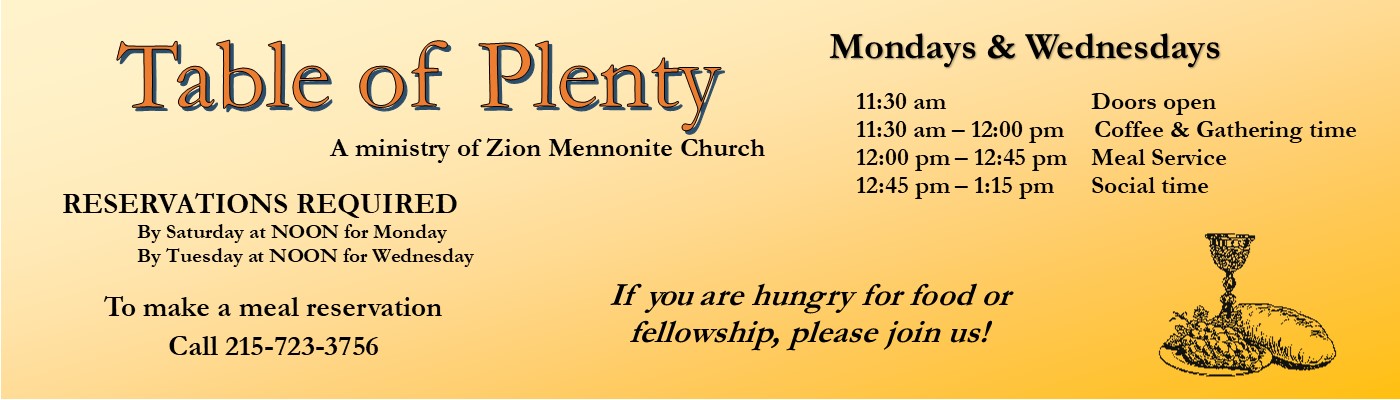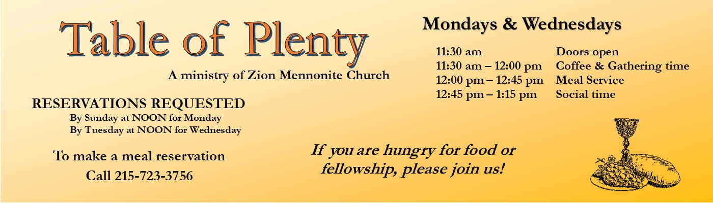 Believing that all people are important to God, we at Zion Mennonite Church desire to grow by welcoming each person, valuing community and nurturing our relationship with Jesus Christ and one another.